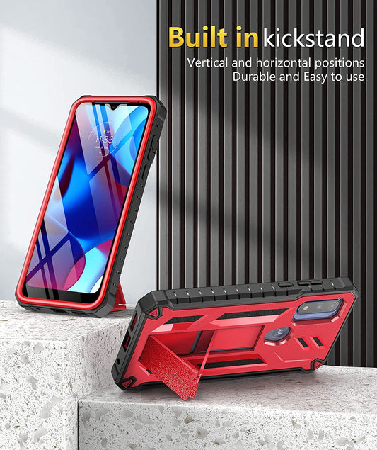 WTYOO für Motorola Moto G Pure Handyhülle, Moto G Power 2022/ G Play 2023 Hülle: mit Gürtelclip-Holster und integriertem Displayschutz und Ständer, Ganzkörper-Doppelschicht-robuste Schutzhülle, rot