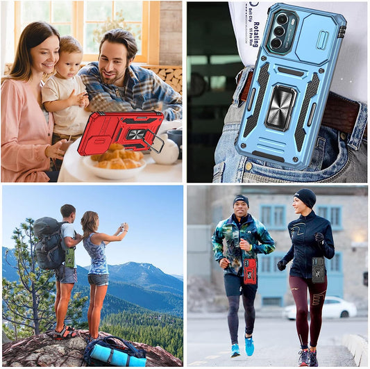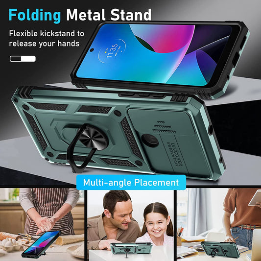SYONER für Motorola Moto G Play 2023 Hülle, Moto G Power 2022 Hülle, Moto G Pure Hülle mit Displayschutzfolie, stoßfeste Handyhülle & verschiebbare Kameraabdeckung & Ringhalter Ständer [Alpingrün]