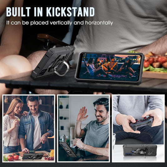 Für Motorola Moto-G Pure Hülle: mit gehärtetem Displayschutz und integriertem, um 360° verstellbarem Ringständer, stoßfestem Schutz, TPU-Stoßfänger-Rüstungsdesign-Telefonabdeckung für Moto G Pure – Schwarz