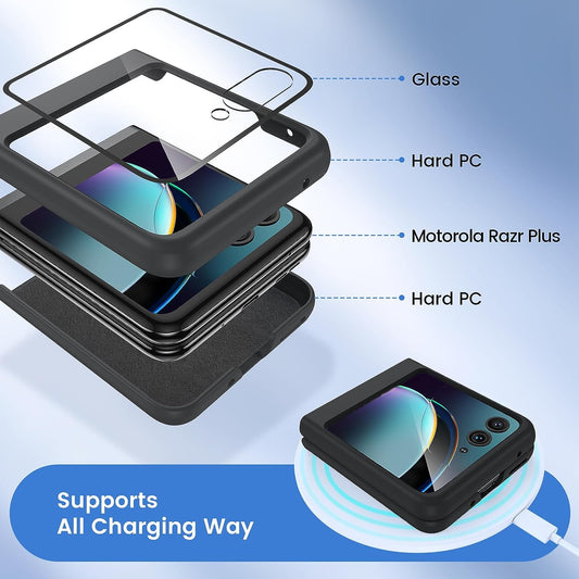 VEGO für Motorola Razr plus Hülle, Motorola Razr+ 2023 Ganzkörperabdeckung mit [integriertem Kamera-Displayschutz] Harter PC-Stoßfänger, schützende, stoßfeste, kratzfeste Slim-Fit-Hülle – Schwarz