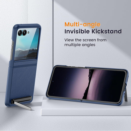 NULETO für Moto Razr plus 2023 Hülle mit Ständer, Razr+ Handyhülle mit integriertem Displayschutz für den äußeren Bildschirm, Fallschutz, schlanke Motorola Razr plus Hülle mit luxuriösem Lederbezug, Blau