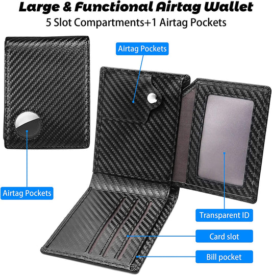 Airtag-Geldbörse, echtes Premium-Leder, Kreditkarten-Geldhalter, Airtag-Abdeckung, Air-Tag-Hülle, automatisches Pop-up-Geldbörse, Aluminium, schlanke Tasche, Bifold (Kohlefaser)