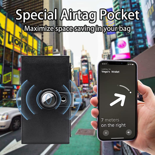Schlanke, minimalistische Airtag-Brieftaschenhülle, Bifold-Brieftasche aus echtem Leder, multifunktionale RFID-blockierende Vordertasche mit integrierter Airtag-Hülle für Männer und Frauen (schwarz)