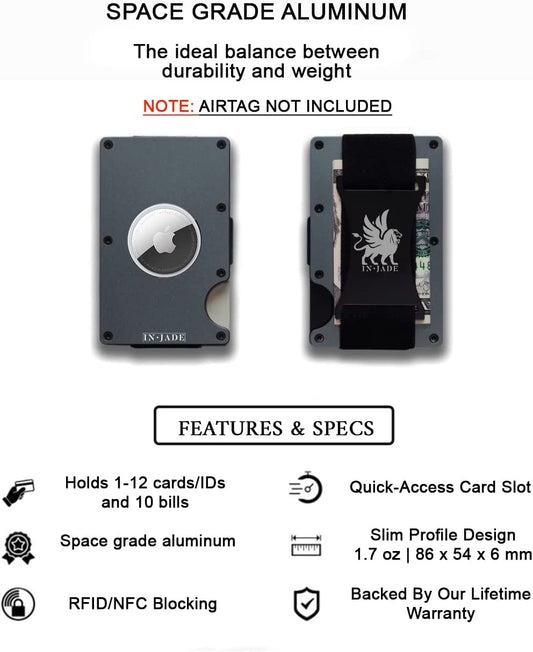 INJADE Airtag-Geldbörse – minimalistisches, schlankes Metall-Geldbörse (kein Airtag) – RFID-blockierendes Kreditkartenetui auf der Vorderseite – Herren-Geldbörse mit Geldklammer – kompakte Geldbörse für Männer – Aluminium-Geldbörse – Metall-Geldbörse