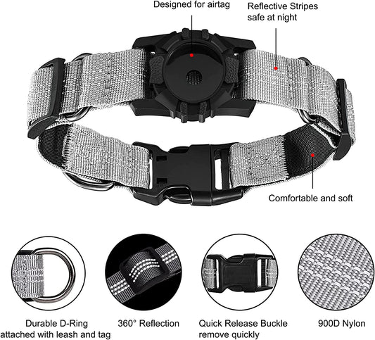 Airtag-Hundehalsband, Apple Air-Tag-Hundehalsband, robustes Hundehalsband mit Airtag-Halterung, verstellbares Air-Tag-Zubehör, Haustierhalsband für mittelgroße und große Hunde… (S, Grau)