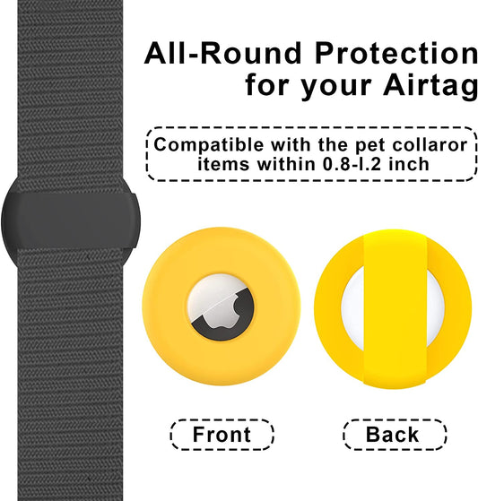 URSOQ 2er-Pack Schutzhülle kompatibel mit Airtags 2021, Silikon-Anti-Verlust-Haustier-Schlaufenhalter für Air-Tag, Hunde- und Katzenhalsband, Silikonhülle, leicht, weich, kratzfest, nicht herunterfallend – Gelb und Schwarz