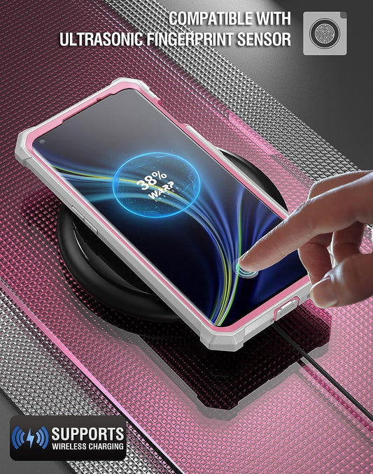 Poetic Guardian-Hülle für Oneplus 10 Pro 5G, integrierter Displayschutz mit Fingerabdruck-ID, stoßfeste Ganzkörper-Hybrid-Stoßstangenabdeckung, Pink/Klar