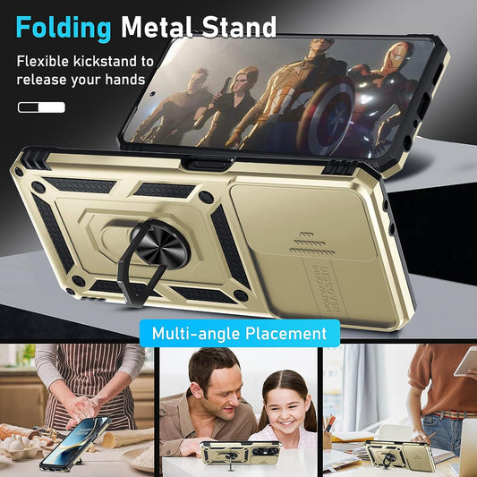 Janmitta Schutzhülle für Oneplus Nord N30 5G, integrierte Kamera-Objektivabdeckung + Displayschutzfolie + Fingerring-Halterung, Ständer, robuste, stoßfeste Ganzkörper-Schutzhülle, 2023 Gold