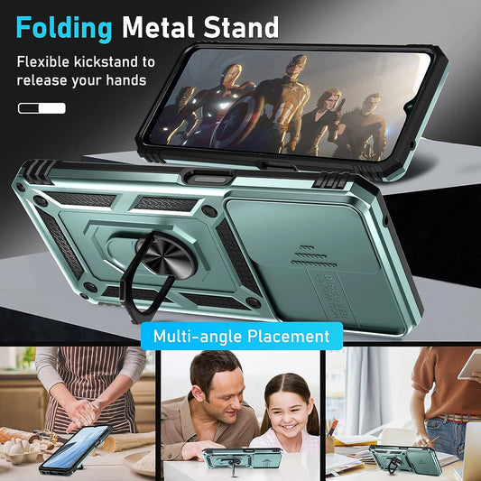 Schutzhülle für Oneplus Nord N300 5G, integrierte Kamera-Objektivabdeckung und Displayschutz, robuste, stoßfeste Ganzkörper-Schutzhülle, integrierter Fingerring, stabile Halterung, Ständer, 2022, Dunkelgrün