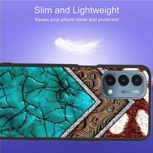 KSHSAA Entworfen für Oneplus Nord N200 5G Western-Hülle, Western-Rindsleder, türkis und braun, Tierdruck für Oneplus Hülle Damen Herren, weiches Silikon, stoßfest, modische Hülle für Oneplus