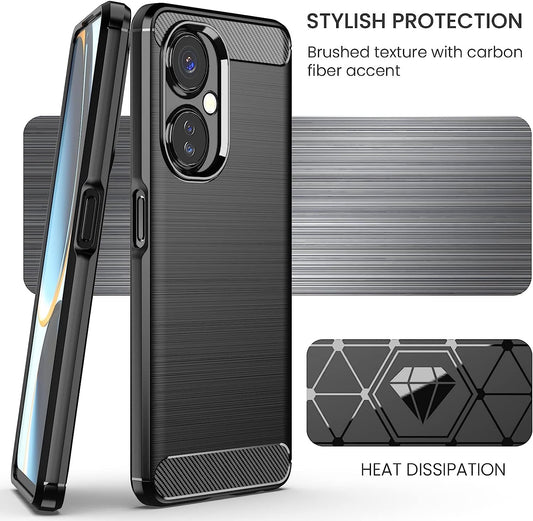 Dretal für Oneplus Nord N30 5G Hülle mit Displayschutzfolie aus gehärtetem Glas, stoßdämpfende, gebürstete, flexible, weiche TPU-Karbonfaser-Schutzhülle für Oneplus Nord N30 5G (Ls-Schwarz)