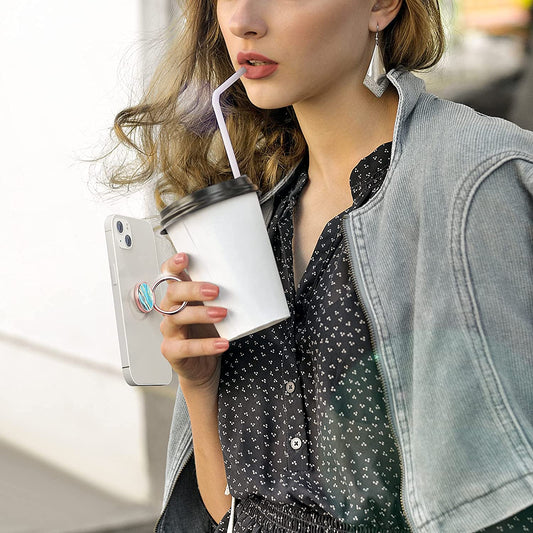 Exoer Transparenter Handy-Ring-Ständer, Handy-Ring-Halterung, Fingergriff, Schlaufe, Fingerring-Ständer (2 Silber, 2 Schwarz (rund))