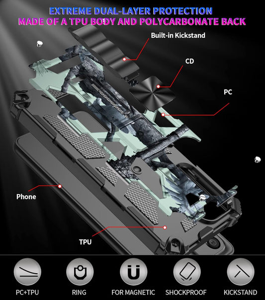 Ccsmall Camouflage Case for Samsung Galaxy A53 5G, Heavy Duty Shockproof Protection Military Grade [Built-In Magnetic Kickstand] Army Camo Phone Cover Case for Samsung Galaxy A53 5G MC Mint Green
