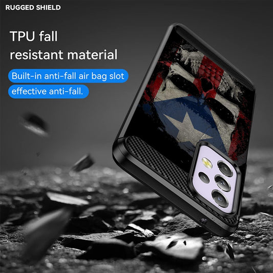 Cases on Deck Casesondeck Skull Flags Case Compatible with Samsung Galaxy A53 5G / A53 5G Case, Slim Tough Matte Design with Carbon Fiber Texture (Puerto Rico Skull)