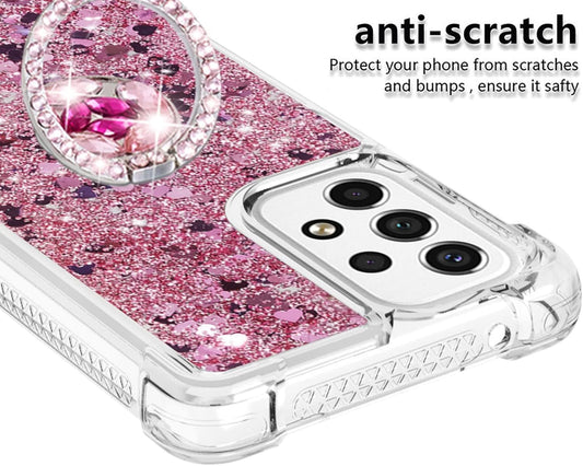 Ccsmall for Samsung Galaxy A53 5G Glitter Case with Ring Holder, Bling Sparkle Floating Liquid Soft TPU Cushion Fashion Girly Women Girls Clear Case Cover for Samsung Galaxy A53 5G LSZ Rose Gold