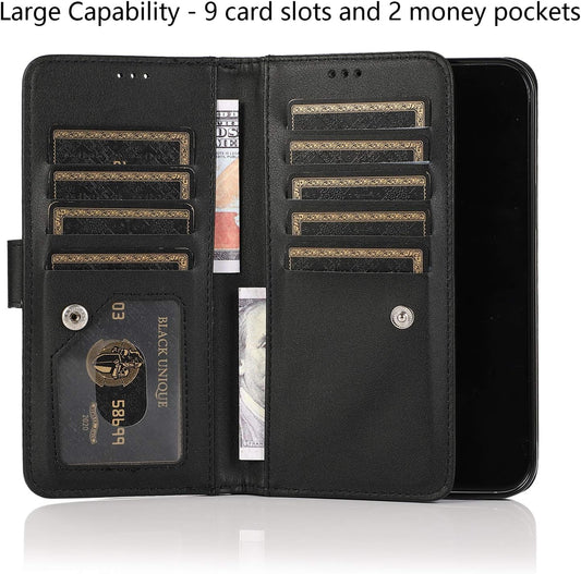 EYZUTAK Brieftaschen-Hülle für Samsung Galaxy Note 20 5G, magnetische Handtasche mit Reißverschlusstasche, PU-Leder, Klapphülle mit 9 Kartenfächern und Handschlaufe, Folio-TPU-Innenständerhülle für Note 20 5G – Schwarz