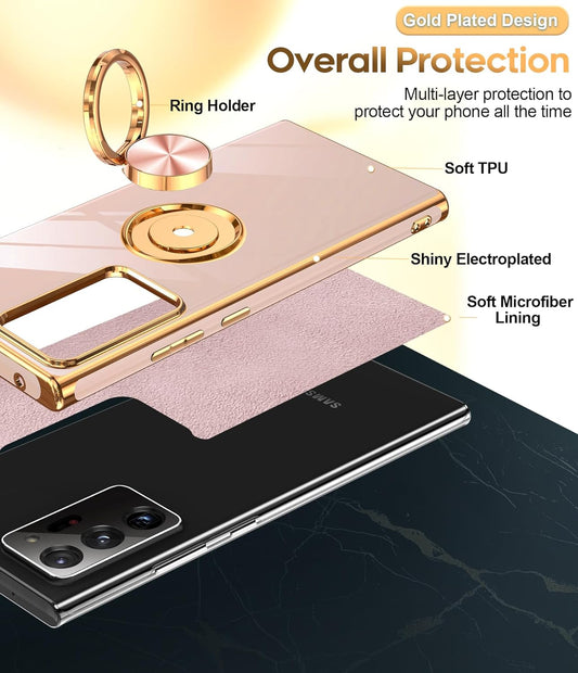 Leyi für Galaxy Note 20 Ultra Hülle: 360° drehbarer Ringhalter, magnetischer Ständer, Plattierung Roségold-Kantenschutz für Samsung Galaxy Note 20 Ultra Hülle, Rosa