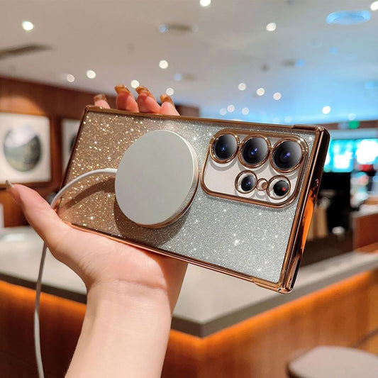 Aowner für Samsung Galaxy S21 Ultra magnetische Hülle kompatibel mit Magsafe, vollständiger Schutz, quadratisch, glitzernd, transparente Handyhülle für Frauen und Mädchen, süße, weiche, stoßfeste Bumper-Schutzhülle, 6,8 Zoll, Gold