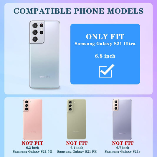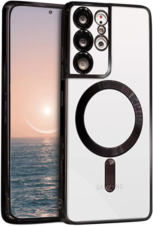 Luhuanx Magnetische Hülle für Samsung S21 Ultra 5G, Entwickelt für Samsung Galaxy S21 Ultra Hüllen mit Vollabdeckungsobjektiv, kabellosem Ladegerät, Bildschirm- und Kameraschutz (Kristallschwarz)