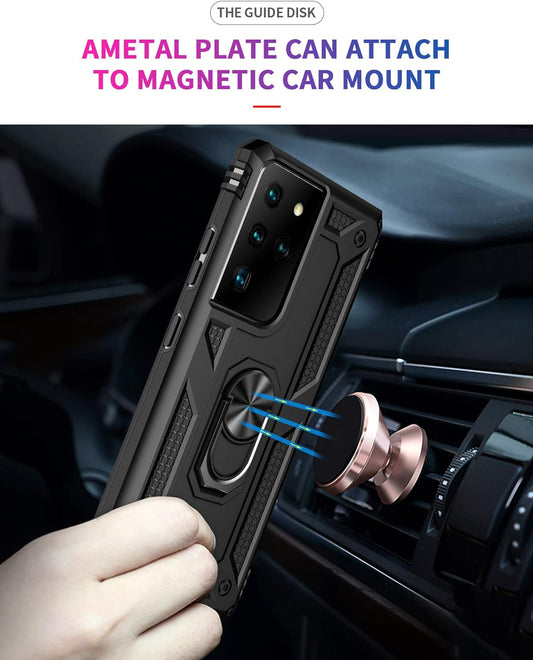 Schutzhülle für Samsung Galaxy S21 Ultra 5G mit HD-Displayschutzfolie, Androgate Metallringhalter in Militärqualität, Ständer, 4,5 m Fallgetestet, stoßfeste Schutzhülle für Samsung Galaxy S21 Ultra, Schwarz