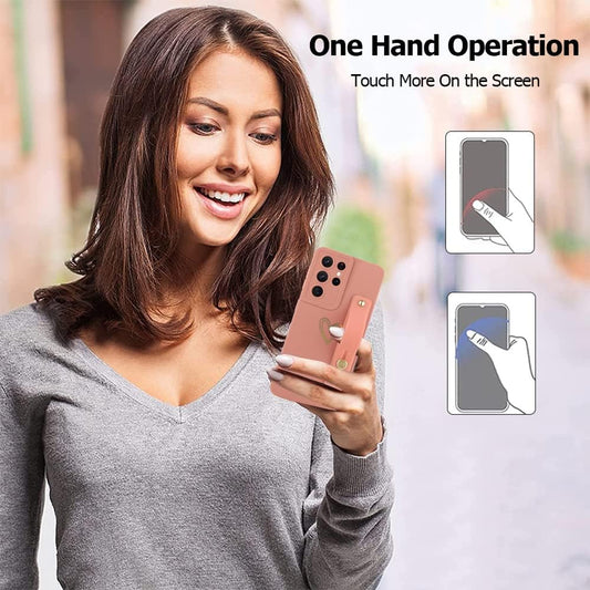 Fiyart Entworfen für Samsung Galaxy S21 Ultra Hülle mit Telefonständerhalter, süße Liebesherzen, schützende Kameraschutzhülle mit Handschlaufe für Frauen und Mädchen für Galaxy S21 Ultra 6,8 Zoll, Rosa