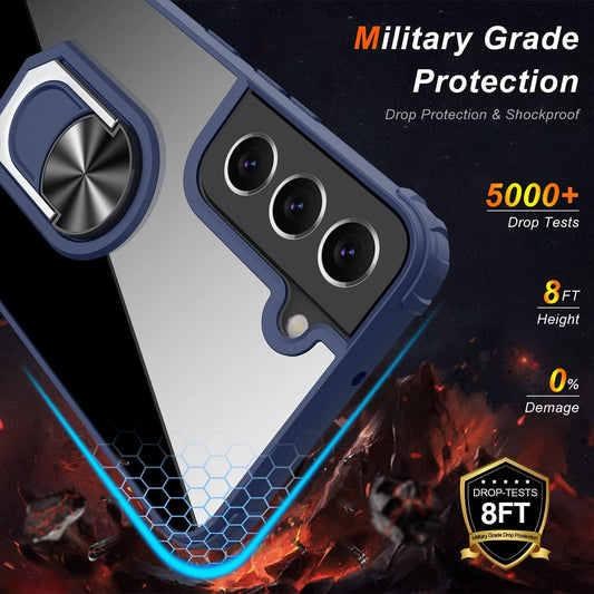 LUMARKE Galaxy S21 FE Hülle mit Displayschutz, Samsung S21 FE Cover, kristallklar, vergilbungsfrei, schlanke, weiche Acryl-Schutzhülle mit magnetischem Ständer für Samsung Galaxy S21 Fe, Blau