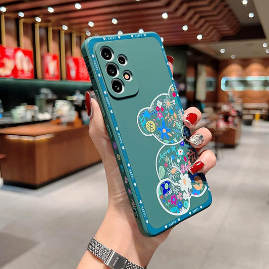 WEDO Kompatibel mit Samsung Galaxy A53 Blumenhülle, süße Bärenhülle für Frauen und Mädchen, Kamera-Objektivschutz, weiches Silikon, stoßfeste Bumper-Candy-Hülle für Samsung Galaxy A53 5G 6,5 Zoll (grün)