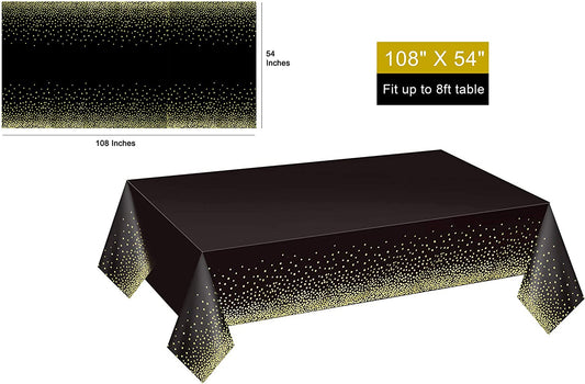 Gexolenu 4er-Pack schwarz-goldene Einweg-Kunststoff-Tischdecken für rechteckige Tische (137,2 x 274,3 cm), Party-Tischdecken für Geburtstage, Tischdecken für Abschlussfeiern, Dekorationen für die Klasse 2023