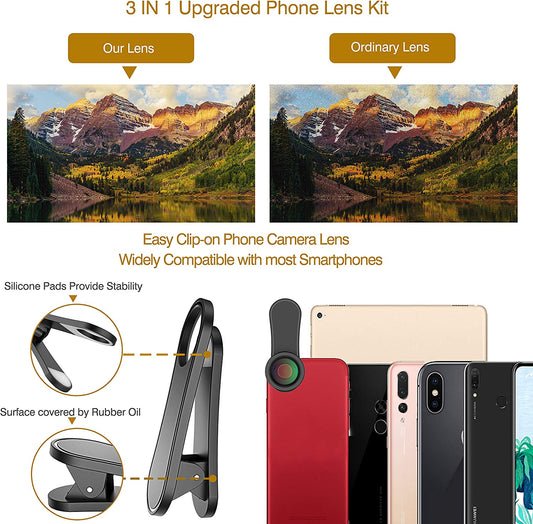 Handy-Kameraobjektiv, verbessertes 3-in-1-Handy-Objektiv-Set – 198°-Fisheye-Objektiv + Makro-Objektiv + 120°-Weitwinkelobjektiv, Clip-on-Handy-Objektiv-Set, kompatibel mit iPhone, Samsung und Android-Smartphones