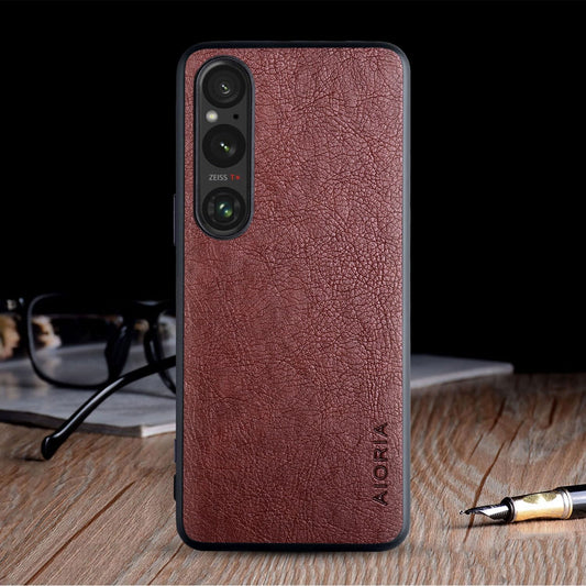 AIORIA Hülle für Sony Xperia 1 V 6,5-Zoll-Bildschirm, Premium-PU-Lederbezug, Retro-Business-Design, vollständige Schutzhülle für Sony Xperia 1 V 5G (Kaffee)