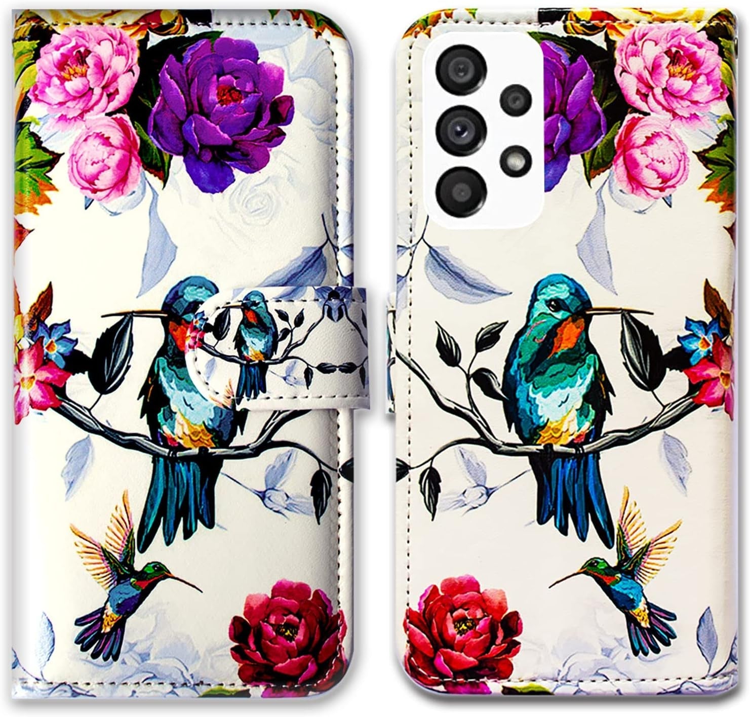 Bcov Galaxy A53 Case, Black Bird Green Leather Flip Phone Case Wallet Cover with Card Slot Holder Kickstand for Samsung Galaxy A53 5G