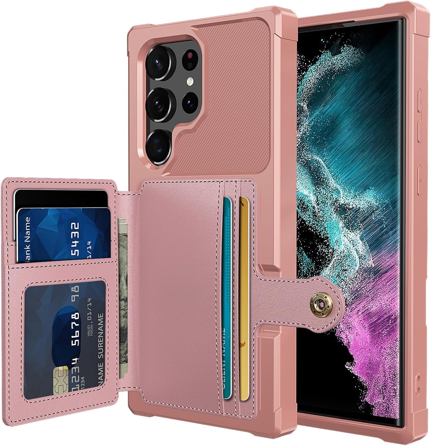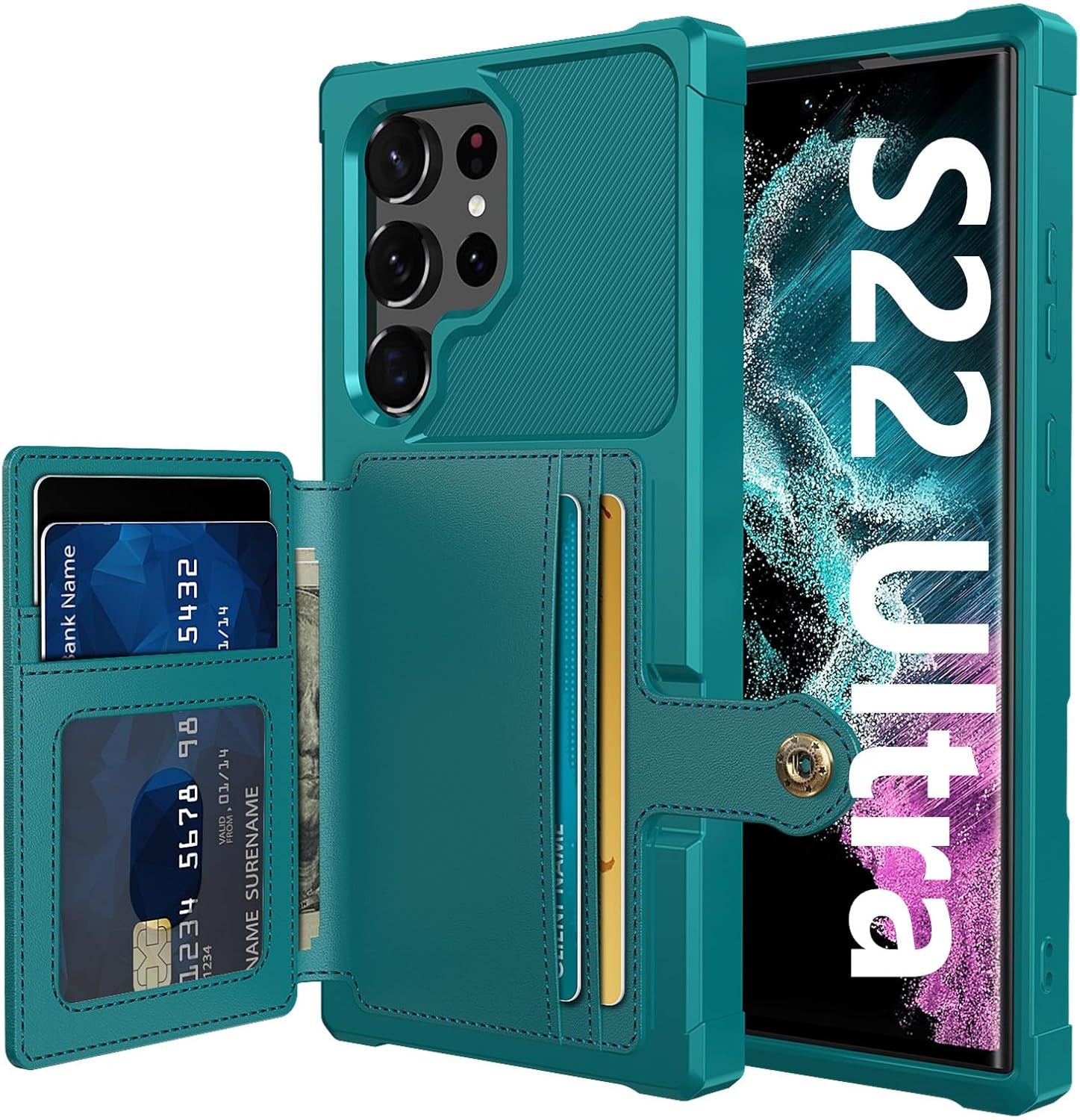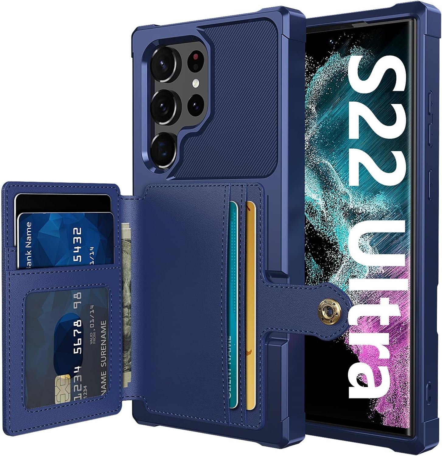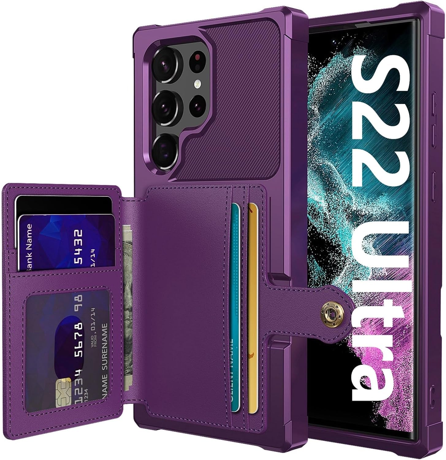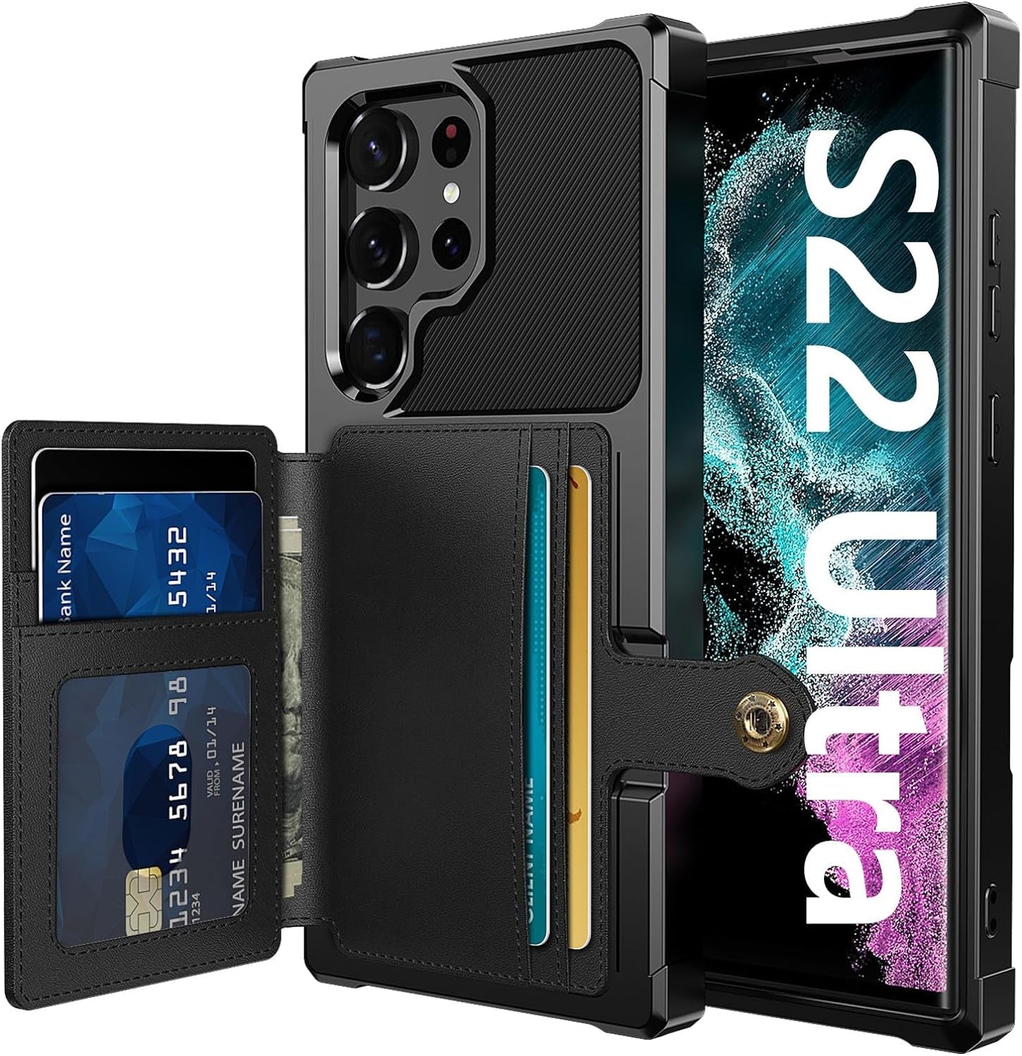 - ❤【Credit Card Slot Holder Wallet Case】This Galaxy S22 Ultra Wallet Case can hold up to 5 cards, making it easy to slip in your credit cards, access control, ID card or a small amount of cash on the go with easy reach. It is perfect for individuals who want to streamline their day-to-day and reduce the burden of carrying a bulky wallet. Additionally, the magnetic snap on the back ensures that the personal belongings are securely enclosed, providing peace of mind when on the go