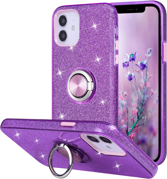 Wisdompro Iphone 12 Mini Case, Cute Glitter Bling Sparkle Protective Case with Ring Kickstand, Women Girls Phone Case for 5.4 Inch Apple Iphone 12 Mini - Purple
