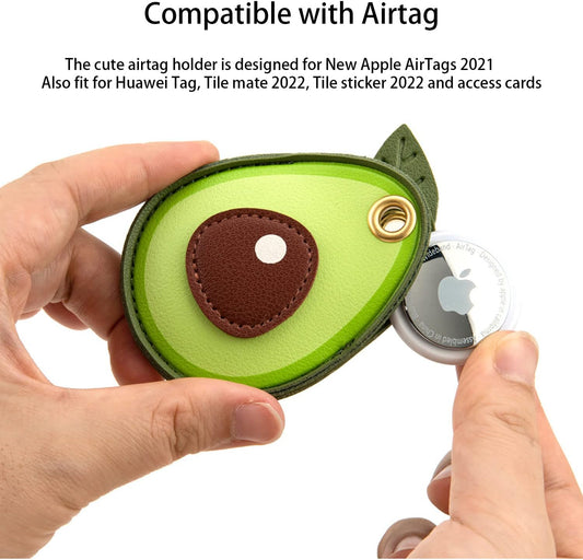 [2 Pack] Leather Airtag Holder Case Access Card Keychain, Cute Airtag Keychain Case with Key Ring, Anti-Scratch Shockproof Air Tag GPS Tracker Cover Accessories for Kids Girls Backpacks