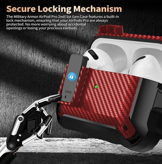 [4 in 1] Airpods Pro 2 Gen/Pro Case Lock with Cleaner Kit&Replacement Ear Tips(S/M/L), Olytop Rugged Airpod Pro 2Nd/1St Generation Protective Cover for Ipod Pro 2019/2022 with Keychain, Black/Red