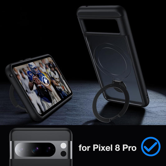 [360°Rotatable Ring] for Google Pixel 8 Pro Case Compatible with Magsafe [NO.1 Magnetic Invisible Stand] [Military Shockproof] [Translucent Matte] with Silicone Bumper for Pixel 8 Pro Cover Slim,Black