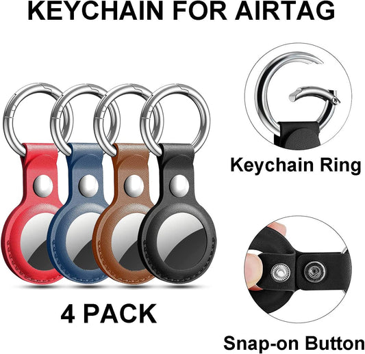 [4 Packs] Waterproof Airtag Keychain & Leather Air Tag Holder, Airtag Case with Key Ring for Apple Airtags, IPX8 Airtag Cover for Wallet, Luggage, Cat, Dog, Pets