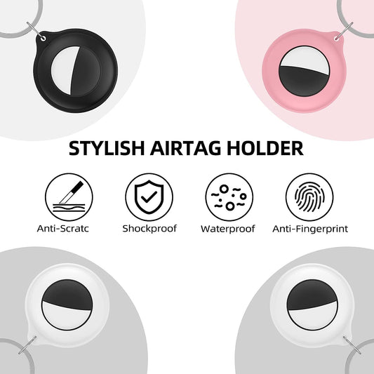 [4 Pack] Apple Airtag Holder with Key Ring - Soft Silicone Air Tag Case Durable Scratch Resistant Cover Protective Airtag Keychain Accessory for Keys, Pets