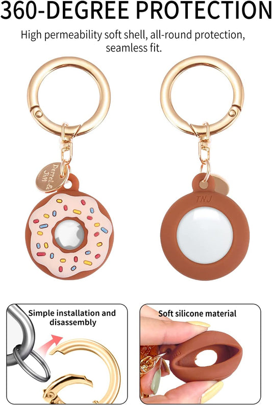 [4 Pack] Vozehui Airtag Keychain Donut Case for Airtag Tracker,Cute Protective Airtag Holder with Anti-Lost Keychain,Anti-Drop Scratch Airtag Holder Keychain Accessories for Kids Pets Backpacks