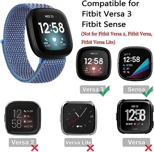 3 Pack Nylon Bands for Fitbit Sense 2/Sense/Versa 4/Versa 3 Bands for Women Men, Soft Breathable Adjustable Replacement Strap Wristbands for Fitbit Sense & Sense 2/Versa 3 & 4 (Black/Cape Code Blue/Seashell)