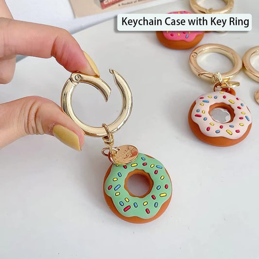 3D Airtag Holder Case, Cute Doughnut Airtag Keychain Case with Key Ring, Soft Silicone Anti-Scratch Shockproof Air Tag GPS Tracker Cover Keychain Accessories for Kids Women Backpacks(Brown)