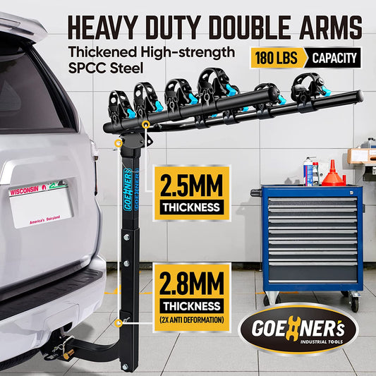 4 Bike Rack Hitch Mount(180 Lbs Capacity), Bike Hitch Hanging Rack and Carrier for Car, SUV and Truck with 2” Receiver, High Strength Double Arms, Anti-Rattle System