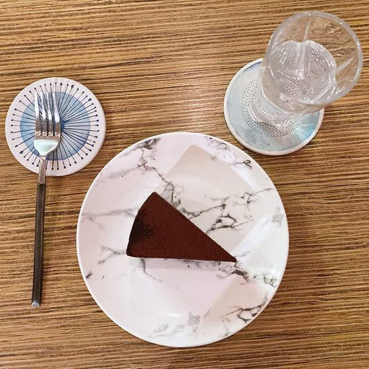 AD Set of 6 Coasters for Drinks Absorbing round Ceramic Stone Coaster with Cork Base,Tabletop Protection Mat for Mugs and Cups,Office,Kitchen (Blue Watercolor Series)