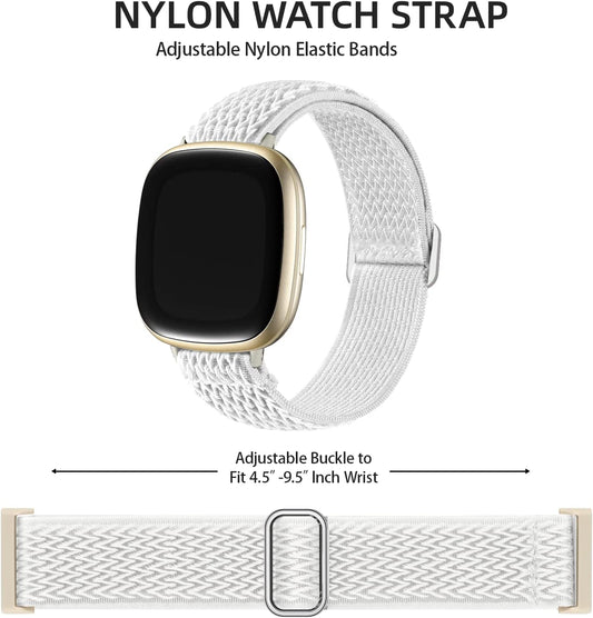 Adorve Compatible with Fitbit Versa 3 Bands/Fitbit Versa 4 Band/Fitbit Sense/Sense 2 Bands for Women Men, Adjustable Stretchy Solo Loop Elastic Nylon Sport Strap for Smartwatch Replacement