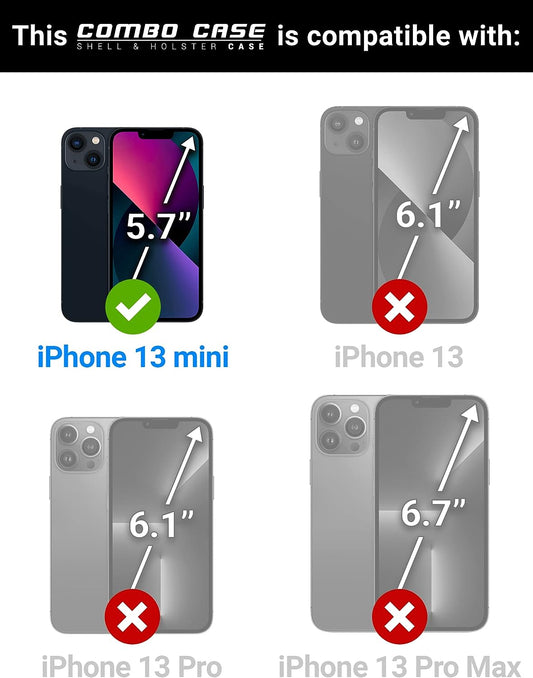 Aduro Combo Case with Kickstand & Holster for Iphone 13 Mini, Slim Shell & Swivel Belt Clip Holster, with Built-In Kickstand for Apple Iphone (5.4") 2021