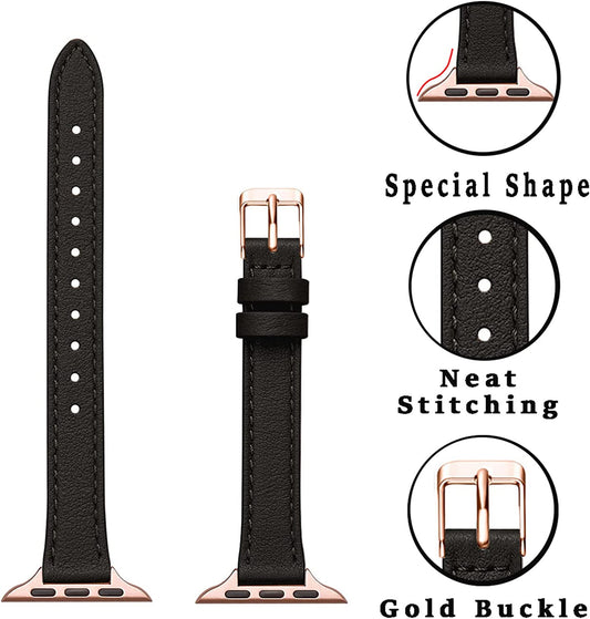 STIROLL Slim Leather Bands Compatible with Apple Watch Band 38Mm 40Mm 41Mm 42Mm 44Mm 45Mm 49Mm, Top Grain Leather Watch Thin Wristband for Iwatch Ultra SE Series 8/7/6/5/4/3/2/1