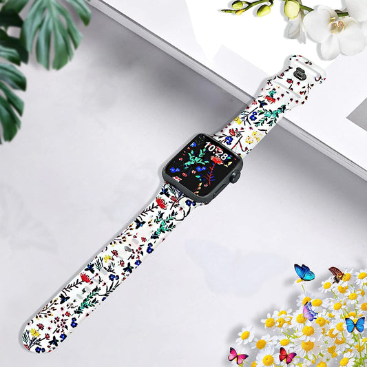 Sport Band Compatible with Apple Watch Bands Series 8/7/6/5/4/3/2/1/SE, Iwatch 38Mm 40Mm 41Mm 42Mm 44Mm 45Mm 49Mm for Women Men,Cute Butterfly/Leopard Patterns Printed Silicone Strap Replacement Bands