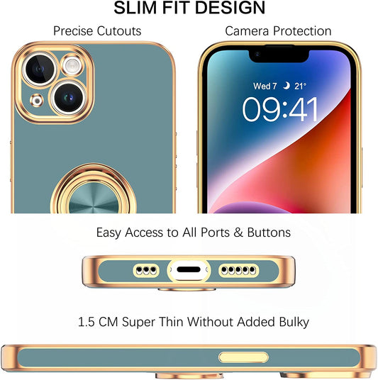 VENINGO Iphone 14 Case,Phone Cases for Iphone 14,Slim Fit Soft 360° Ring Holder Kickstand Magnetic Car Mount Supported Easy Clean Shockproof Protective Cover for Apple Iphone 14 6.1", Blue Grey/Golden