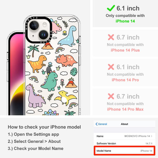 MOSNOVO Compatible with Iphone 14 Case, [Buffertech 6.6 Ft Drop Impact] [Anti Peel off Tech] Clear TPU Bumper Phone Case Cover with Cute Joyful Dinosaur Designed for Iphone 14 6.1"