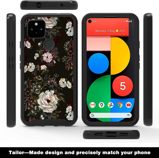 Shinymax Pixel 5 Case with Roses Design,Google Pxiel 5 Phone Case,Hybrid Triple Layer Armor Protective Cover Flexible Sturdy Anti-Scratch Shockproof Bumper Cute Case for Women and Girls-Flowers/Black